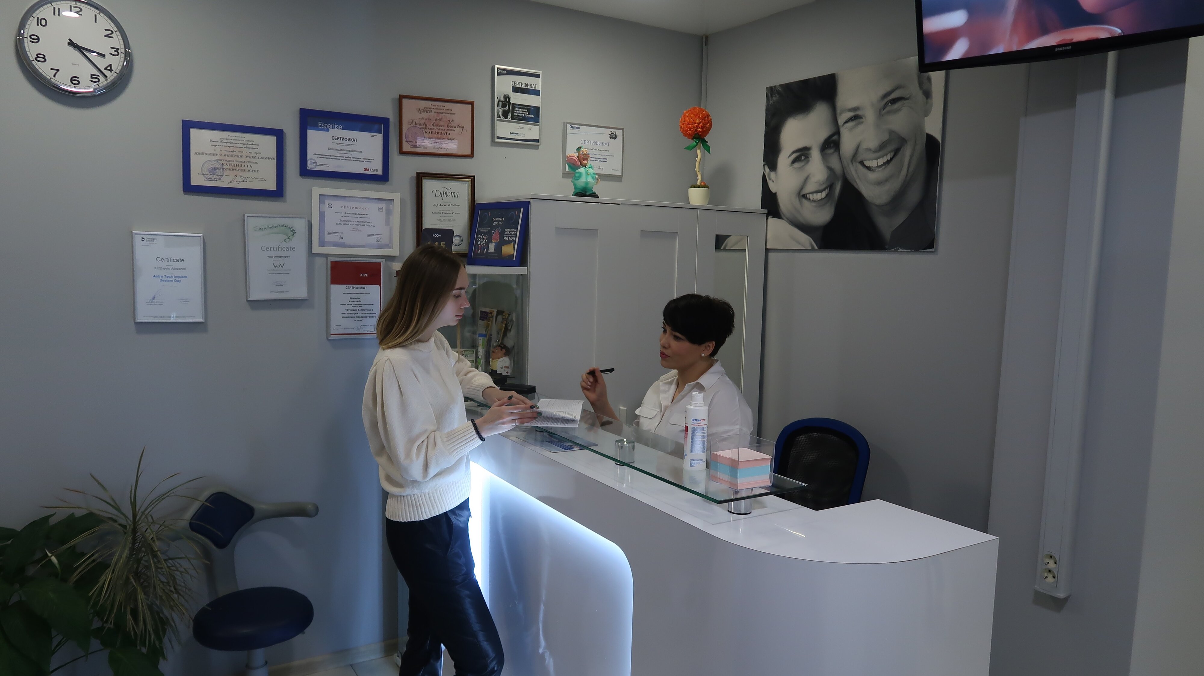 По поводу самой клиники - небольшая, чистая, на ресепшн вежливая улыбчивая женщина, которая после процедуры предложила в помощь самой заполнить карточку пациента. Впечатления, в целом, остались хорошие. Теперь в случае чего - буду иметь в виду эту стоматологию.